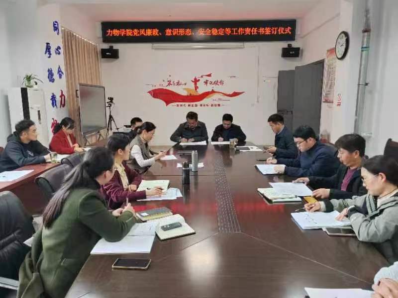 2024年4月7日,永利集团3044官网欢迎您举行2024年度责任书签订仪式。会议由学院党委书记孙东升主持,学院党政领导班子成员和各室安全责任人、各党支部书记出席会议。